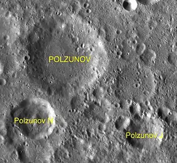 Por convención estos elementos son identificados en los mapas lunares poniendo la letra en el lado del punto medio del cráter que está más cercano a Polzunov.