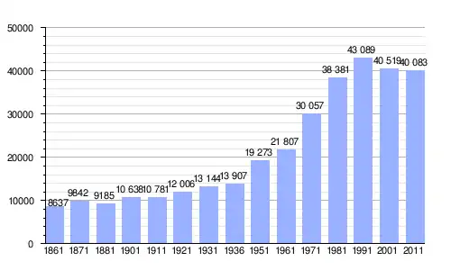Gráfica de evolución demográfica de Pomigliano d'Arco entre 1861 y 2011 |