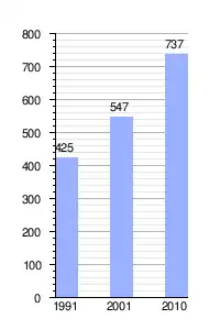 Gráfica de evolución demográfica de Pomona entre 1991 y 2010 |