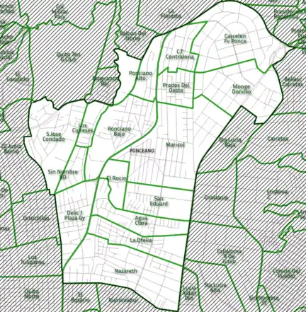 ![]() Ubicación de la parroquia Ponceano dentro de la ciudad de Quito. | ||
