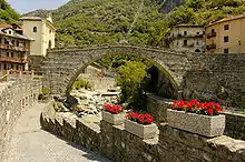 - El puente romano, imponente testimonio de la romanización del Valle de Aosta, del siglo II a.C.[3]