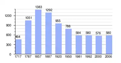 En el año 1842, el municipio alcanza su cifra máxima demográfica con 1.469 habitantes. A partir de ese momento el descenso de población es continuo y se mantiene a lo largo del siglo XX y hasta la actualidad.[8]
