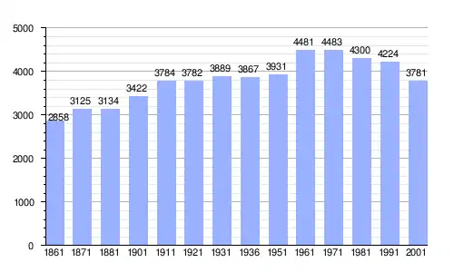 Gráfica de evolución demográfica de Pontecurone entre 1861 y 2001 |