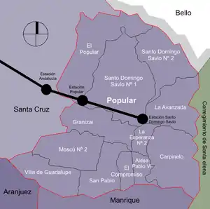 La Comuna 1 Popular es la primera de las 16 comunas de la ciudad de Medellín, capital del departamento de Antioquia. Se encuentra ubicada en la zona nororiental. Limita por el oriente con el corregimiento de Santa Elena por el norte con el Barrio Santa Rita; por el sur con la Comuna Manrique y por el occidente con la Comuna Santa Cruz. Su distribución urbana se caracteriza por ser una formación espontánea, no planificada.