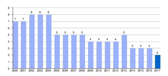 Gráfica de evolución demográfica de Porciones (Salamanca)[1] entre 2000 y 2017 |