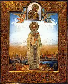 ![]() Icono que representa al santo. Obra de Osip Chirikov. | |||