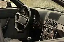 - Llevaba un volante de cuatro radios de diámetro reducido (363 mm)[15] y la tapicería era exclusiva.