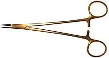 Un porta aguja, también llamado impulsor de aguja, es un instrumento quirúrgico, similar a un hemóstato, utilizado por médicos y cirujanos para sostener una aguja de sutura para cerrar heridas durante la sutura y los procedimientos quirúrgicos.[1]