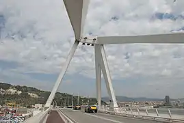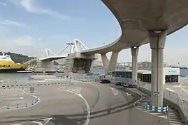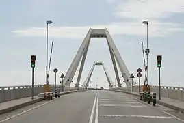 Al puente se accede a través de dos viaductos de acceso que se levantan hasta 22 metros sobre el nivel del mar. Estos viaductos están formados por tableros continuos de hormigón pretensado y se apoyan sobre soportes de aspecto sencillo y esbelto. Las pilas en forma de V mayúscula permiten la transición de los viaductos hacia el puente móvil.