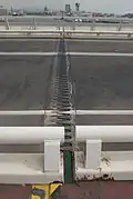 - Detalle de uno de los viaductos de acceso por la parte inferior. También son visibles las pila en forma de V.