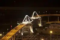 El puente en sí se compone de una estructura basculante en acero formada por dos hojas a 22,5 metros de altura, que se apoyan sobre dos pilas ubicadas en la dársena. El puente se abre para mitad en plano vertical para dar paso a embarcaciones con una luz libre de canal de navegación de 100 metros entre las dos pilas.