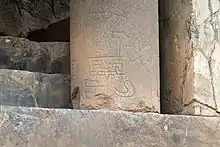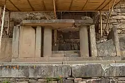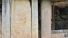 ![]() Columnas, losa voladiza y jambas líticas a ambos lados. | ||
