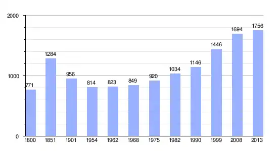 Gráfica de evolución demográfica de Porte-du-Ried entre 1800 y 2013 |