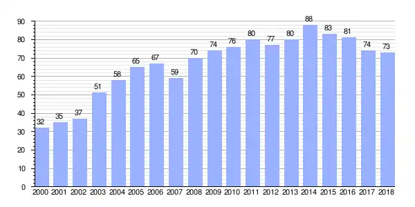 Gráfica de evolución demográfica de Portiño entre 2000 y 2018 |