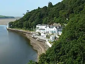 El cuerpo principal del hotel y las casitas denominadas White Horses, Mermaid y The Salutation[nota 1] formaron parte de una gran finca de nombre Aber Iâ (galés, Estuario de Hielo), de mediados de los años 1850, en una zona donde hubo una fundición y unos pequeños astillero. El arquitecto Williams-Ellis cambió el nombre de la zona por el de Portmeirion —puerto por estar en la costa, Meirion por el condado de Mirionnydd, donde en ese entonces se situaba—.[1] Restos de un castillo, referenciado desde 1188 y denominado alternativamente, como Castillo Deudraeth, Castillo Gwain Goch o Castillo Aber Iau, se encuentran en el bosque cercano a la villa.