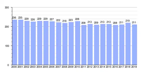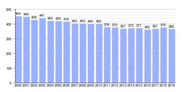 Gráfica de evolución demográfica de Portomouro (parroquia) entre 2000 y 2019 |
