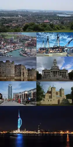 Portsmouth ( /ˈpɔərtsməθ/ ) es una ciudad y autoridad unitaria en el sudeste de Inglaterra, en el Reino Unido.[1][2] Pertenece al condado ceremonial de Hampshire. Portsmouth, conocida popularmente como Pompey, se extiende sobre la isla de Portsea, frente a la isla de Wight en el canal de la Mancha, que a su vez conforma la ría natural de Portsmouth Harbour, formación geográfica favorable para el refugio y las actividades marítimas que han forjado en parte el carácter histórico y económico de la ciudad.
