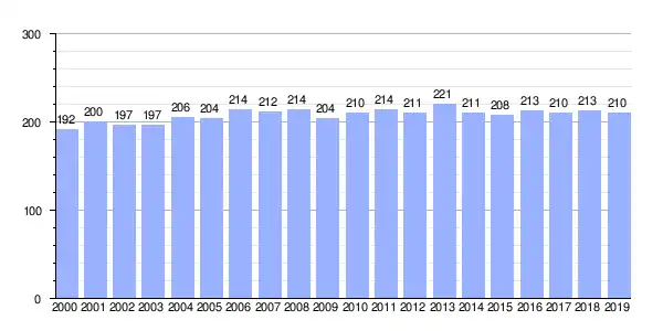Gráfica de evolución demográfica de Porzomillos (parroquia) entre 2000 y 2019 |