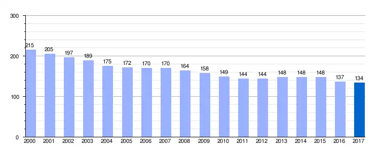 Gráfica de evolución demográfica de Posada de la Valduerna entre 2000 y 2017