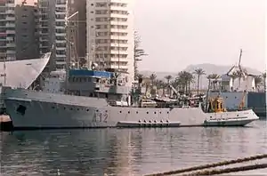 Operó conjuntamente con el Neptuno (A-20) desde su base de Cartagena,[5] hasta que finalmente, por resolución 56/1999, de 12 de febrero de 1999,[2] fue dado de baja, y posteriormente, fue cedido a Mauritania, entregándose el 17 de enero de 2000,[6] donde prestó servicio con el nombre Voum-Legleita (B-551)[1] hasta su hundimiento cerca de Nouakchott.