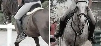 - También ocurre cuando los jinetes plantan sus manos en el cuello sobre un obstáculo para dar apoyo a la parte superior de su cuerpo, pero las manos quedan demasiado atrás para permitir una rienda adecuada para el caballo,