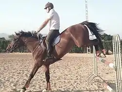 - Saltando con caballos inexpertos, que tienden a dar saltos muy grandes o torpes.
