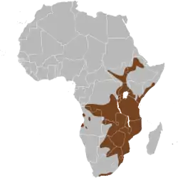 Se distribuye en un amplio rango, como en Etiopía y Somalia, sureste de República Democrática del Congo y hacia el sur como en Sudáfrica.[3] También los hay en Madagascar y posiblemente, en el archipiélago de las Comoras. No se sabe cómo llegó a estas islas, pero probablemente fue llevado allí por los seres humanos, posiblemente después de un período de domesticación.[5]