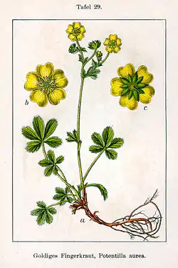 Potentilla aurea es una especie de planta perenne herbácea de la familia Rosaceae.
