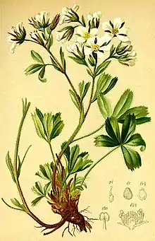1. «Potentilla caulescens». Tropicos.org. Missouri Botanical Garden. Consultado el 11 de enero de 2015.