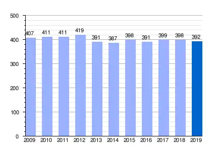 Gráfica de evolución demográfica de Pozo H. (Almería) entre 2009 y 2019 |