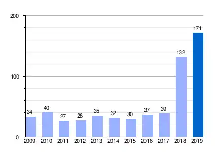 Gráfica de evolución demográfica de Pozo H. (Murcia) entre 2009 y 2019 |