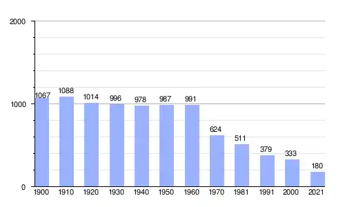 Gráfica de evolución demográfica de Pozoantiguo entre 1900 y 2021 |