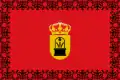 Rectangular, de proporción 2:3, de color rojo vivo con el Escudo Municipal al centro, en sus colores. En bordadura, una cenefa de bordados picados en negro.