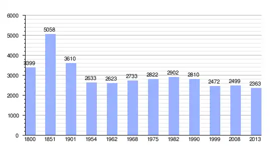 Gráfica de evolución demográfica de Pré-en-Pail-Saint-Samson entre 1800 y 2013 |