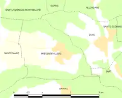 Présentevillers es una población y comuna francesa, en la región de Franco Condado, departamento de Doubs, en el distrito de Montbéliard y cantón de Montbéliard-Ouest.