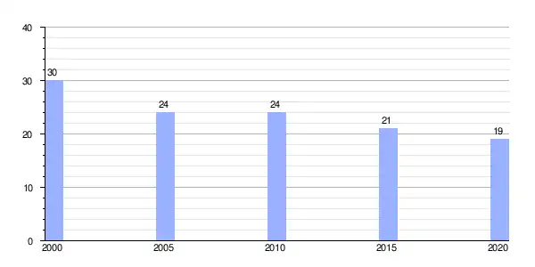 Gráfica de evolución demográfica de Prógalo entre 2000 y 2020 |