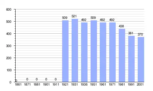 Gráfica de evolución demográfica de Praso entre 1861 y 2001 |