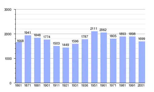 Gráfica de evolución demográfica de Prata Sannita entre 1861 y 2001 |