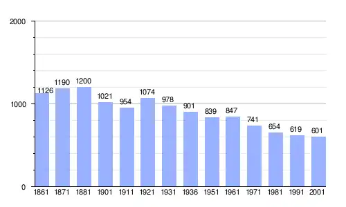 Gráfica de evolución demográfica de Pratiglione entre 1861 y 2001 |