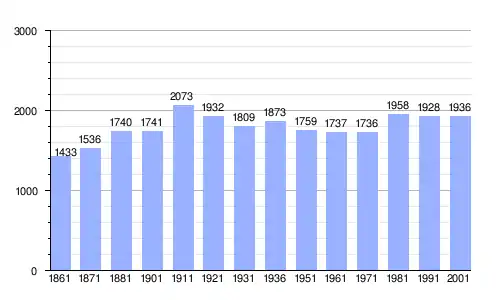 Gráfica de evolución demográfica de Prato Sesia entre 1861 y 2001 |