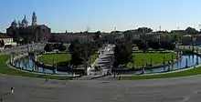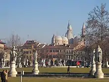 Prato della Valle (Prà deła Vałe en véneto) es una plaza elíptica de 90 000 metros cuadrados situada en Padua, Italia. Es la plaza más grande de Italia,[1] y una de las más grandes de Europa. En la actualidad, la plaza es un gran espacio al aire libre con una isla verde en el centro, l'Isola Memmia, rodeada por un pequeño canal bordeado por dos anillos de estatuas.