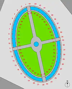 La numeración sigue los números esculpidos en la base de las estatuas.