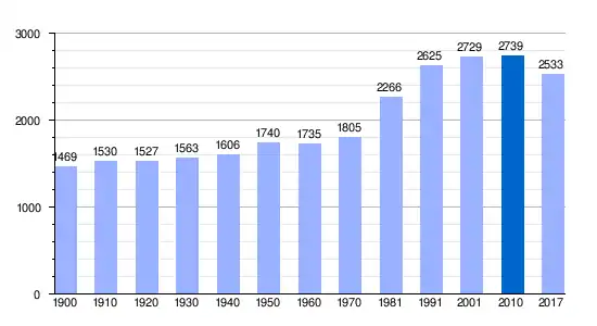 A 1 de enero de 2010 la población del municipio ascendía a 2739 habitantes, 1355 hombres y 1384 mujeres.[4]