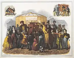 Aunque su vida fue más corta que la del panorama consiguió superarlo. Sus dimensiones eran más reducidas por lo que su producción y transporte era más fácil y permitía la posibilidad de exponer más de una imagen, pero su exhibición debía realizarse en un local específico con las condiciones técnicas adecuadas. A diferencia del panorama este artilugio consiguió el efecto del cambio temporal a través de la luz y el movimiento.[8]