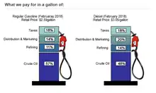Los precios de la gasolina y del diésel alrededor del mundo son similares, aunque existen casos en donde el precio puede tener variaciones debido a las políticas locales: en algunas regiones como en Europa y Japón, imponen altos impuestos a los derivados; mientras que otros como Arabia Saudita y Venezuela, subsidian el costo.[1]