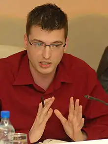 Fue miembro del Comité Central de la Unión Socialdemócrata (SDU) desde 2009, convirtiéndose en el primer político gay autónomo en Serbia.[4] En julio de 2011 renunció como miembro del Comité Central de la SDU y abandonó el partido debido a enfrentamientos con funcionarios de la colectividad.[5]