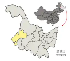 ![]() Mapa de la prefectura de Qiqihar en Heilongjiang | ||