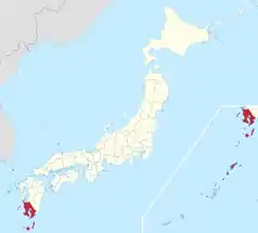 La prefectura de Kagoshima corresponde a las antiguas provincias de Ōsumi y Satsuma, incluida la parte norte de las islas Ryūkyū (Satsunan).