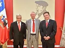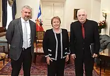 ![]() El chileno Raúl Zurita recibiendo el premio en 2016 de manos de la presidenta Michelle Bachelet y el ministro Ernesto Ottone | ||