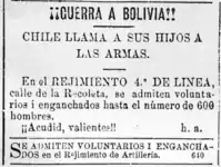 Gonzalo Bulnes acusa que, después de la ocupación de Antofagasta, tanto la prensa chilena como la peruana eran igualmente ardientes: La prensa [peruana] llenaba sus columnas con una literatura guerrera, i su actitud se enardecía con el tono no menos ardiente de la de Chile, especialmente de la de Valparaíso.[2]: 144